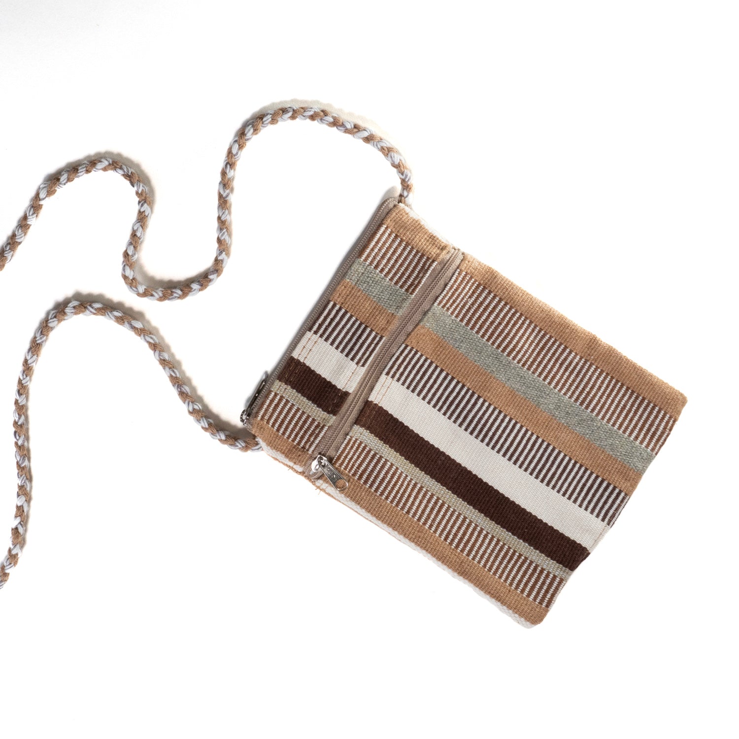 Woven from rare varieties of naturally colorful cotton, this incredible shoulder bag achieves rich color without the use of dyes. Except for the zipper, every part of the bag is handcrafted—from spinning the thread to weaving the fabric. Each piece represents ancient Chimu culture, lovingly passed from one generation to the next.