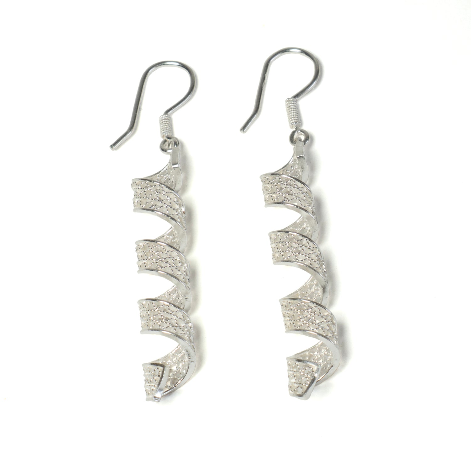 Handmade silver threads wrap and cross over each other in these intricate, helix shaped earrings. Made of 100% sterling silver, these helix earrings truly display our artisans’ mastery over the art of filigree.